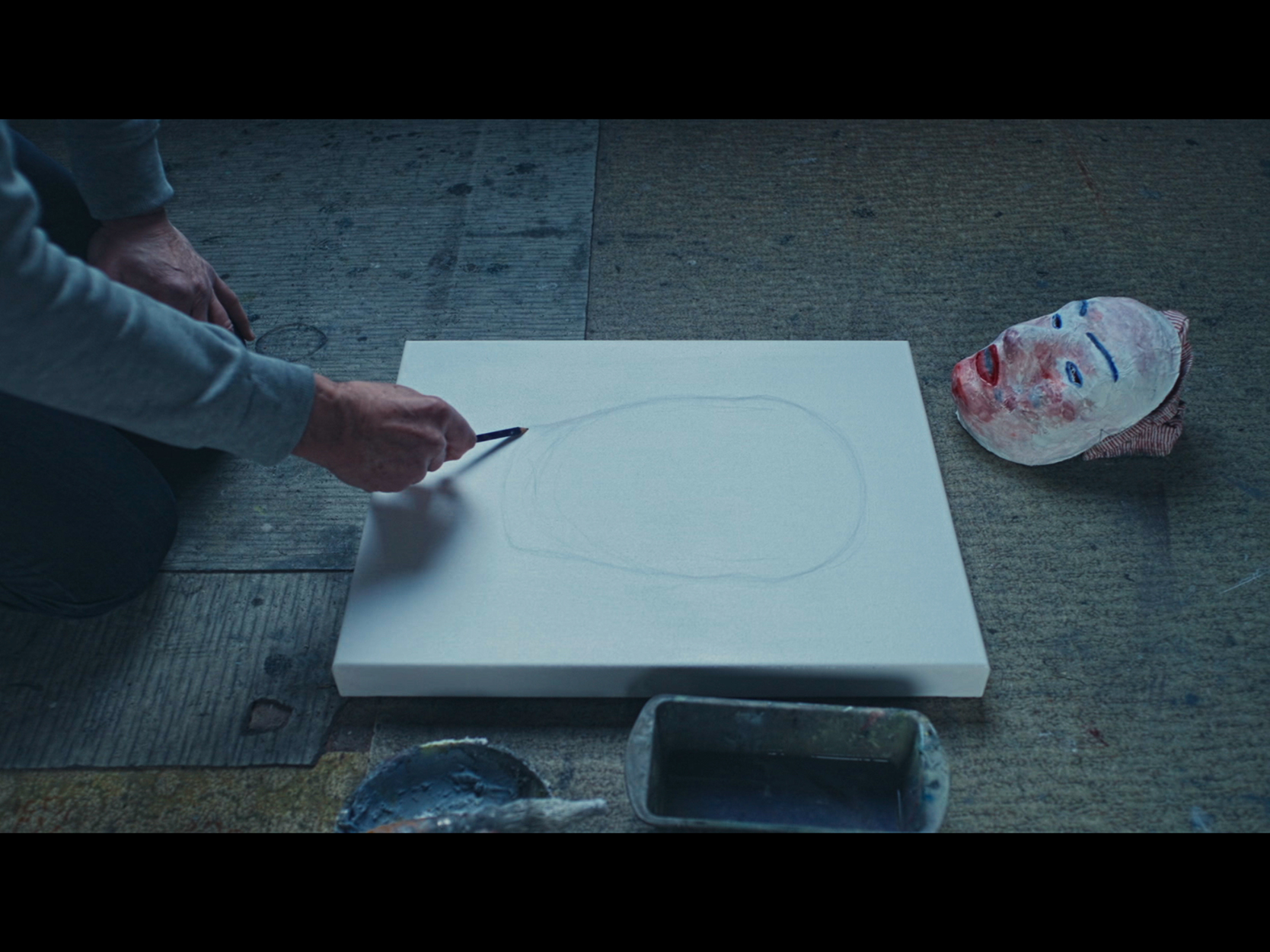 Anouk Van Hooydonk, "Mask", acryl en potlood op papier, 2022.