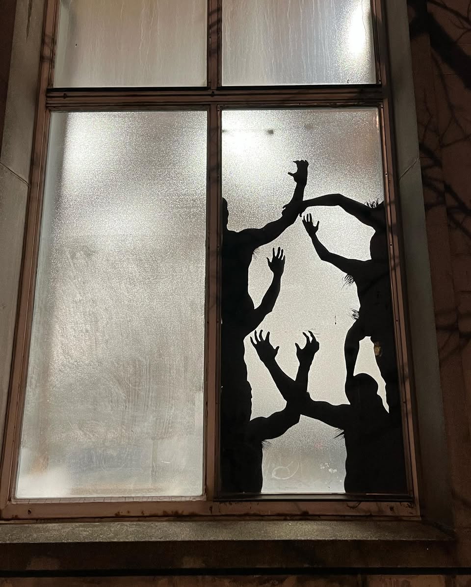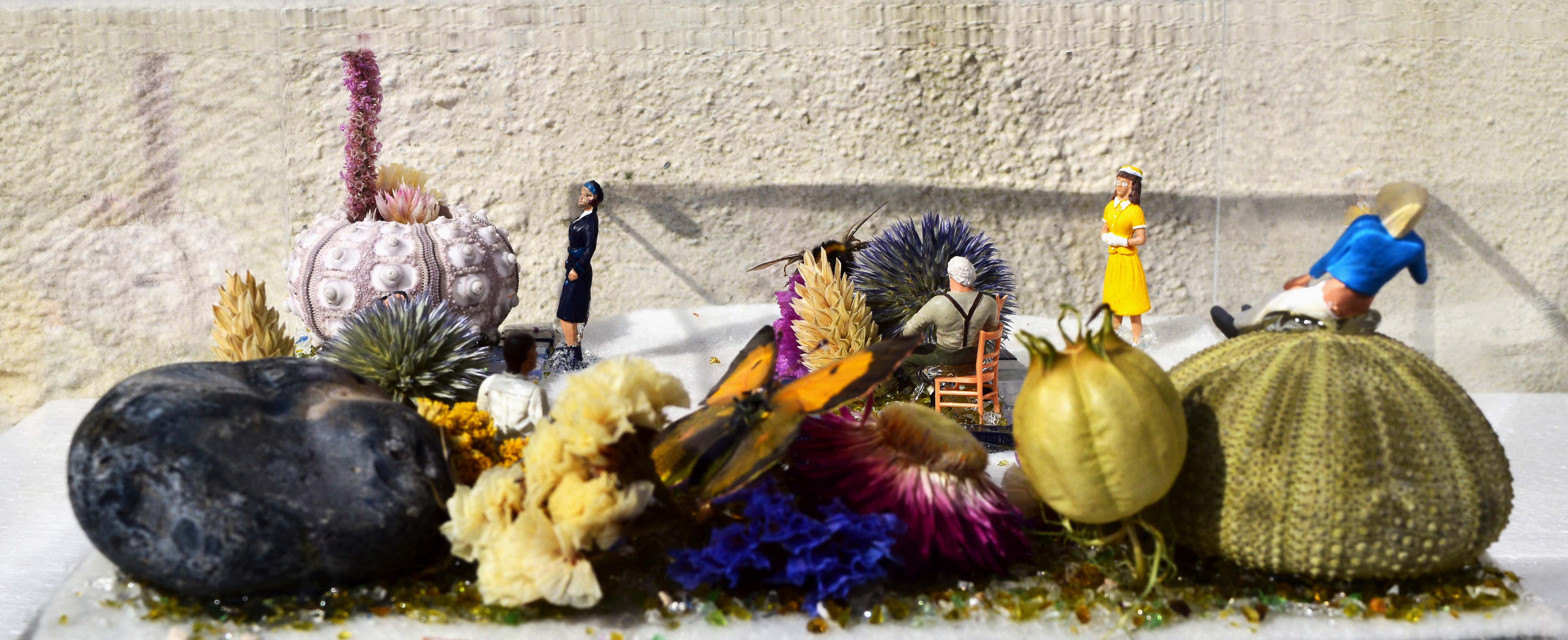 Anouk Van Hooydonk, "Origines du monde", in situ installatie, 2022. Deelname aan kunstparcours "Vitrines d'amour" door de stad Gent. In de vitrine van de Sint-Lucas academie Gent, naast werk van kunstenares Annette Thas.