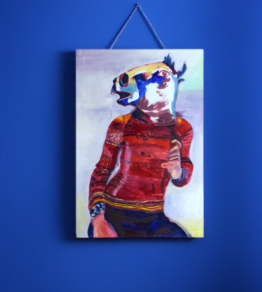 Anouk Van Hooydonk, "Zelfportret als paard", olieverf op papier, 2025.